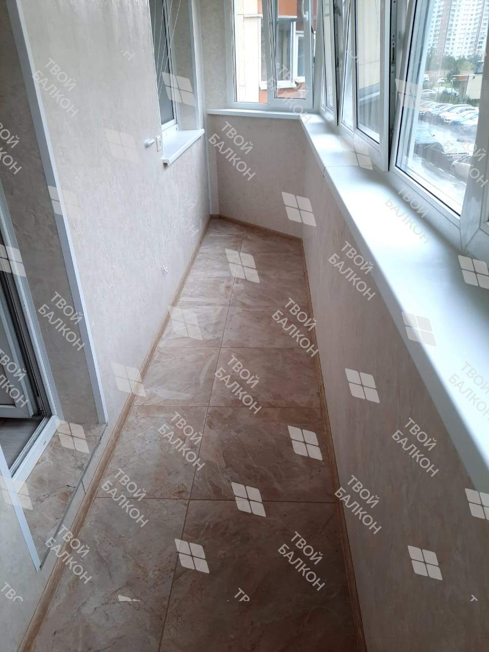 Реализованы работы по отделке балкона "Лодочка" под ключ с утеплением в многоквартирном доме. Сделано остекление балкона, установлен балконный блок и отдельное окно, выходящее на балкон. Все окна выполнены из профиля Rehau Grazio 70 с энергосбережением. Сделано утепление. Отделка стен и потолка выполнена панелями ПВХ, полы - керамогранит. Выведено и разведено по балкону электричество. Установлена потолочная сушилка белья. Материал предоставлялся компанией «Балкония» согласно пожеланиям заказчика.