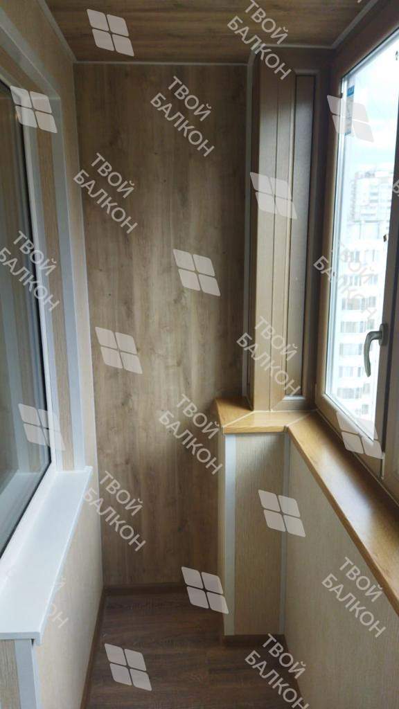 Реализована работы по отделке балкона в многоквартирном доме. Сделано остекление балкона и установлен балконный блок. Все окна выполнены из профиля Rehau Grazio 70 с энергосбережением. Отделка стен и потолка выполнена панелями ПВХ, полы ламинат.  Материал предоставлялся компанией  согласно пожеланиям заказчика.