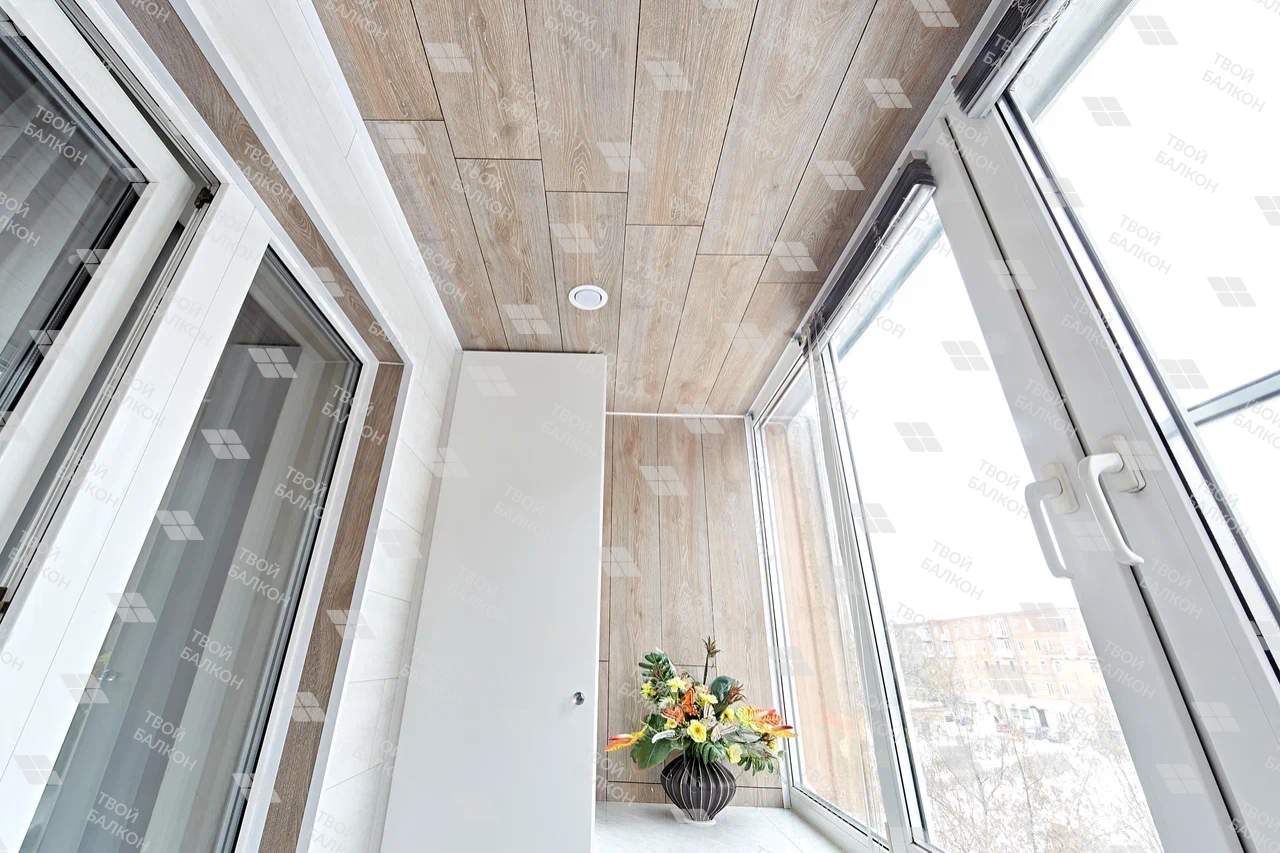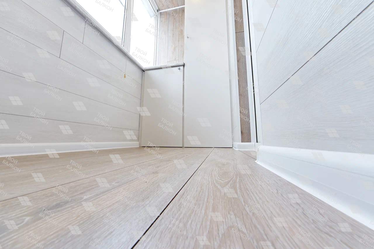 Реализованы работы по отделке балкона с утеплением в многоквартирном доме. Сделано утепление. Отделка стен, потолка и пола выполнена панелями из ламината. Материал предоставлялся компанией согласно пожеланиям заказчика.