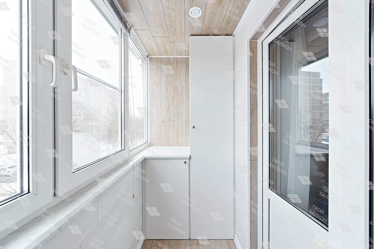 Сроки: 6 дней - отделка, утепление балкона, монтаж шкафа с тумбой.
